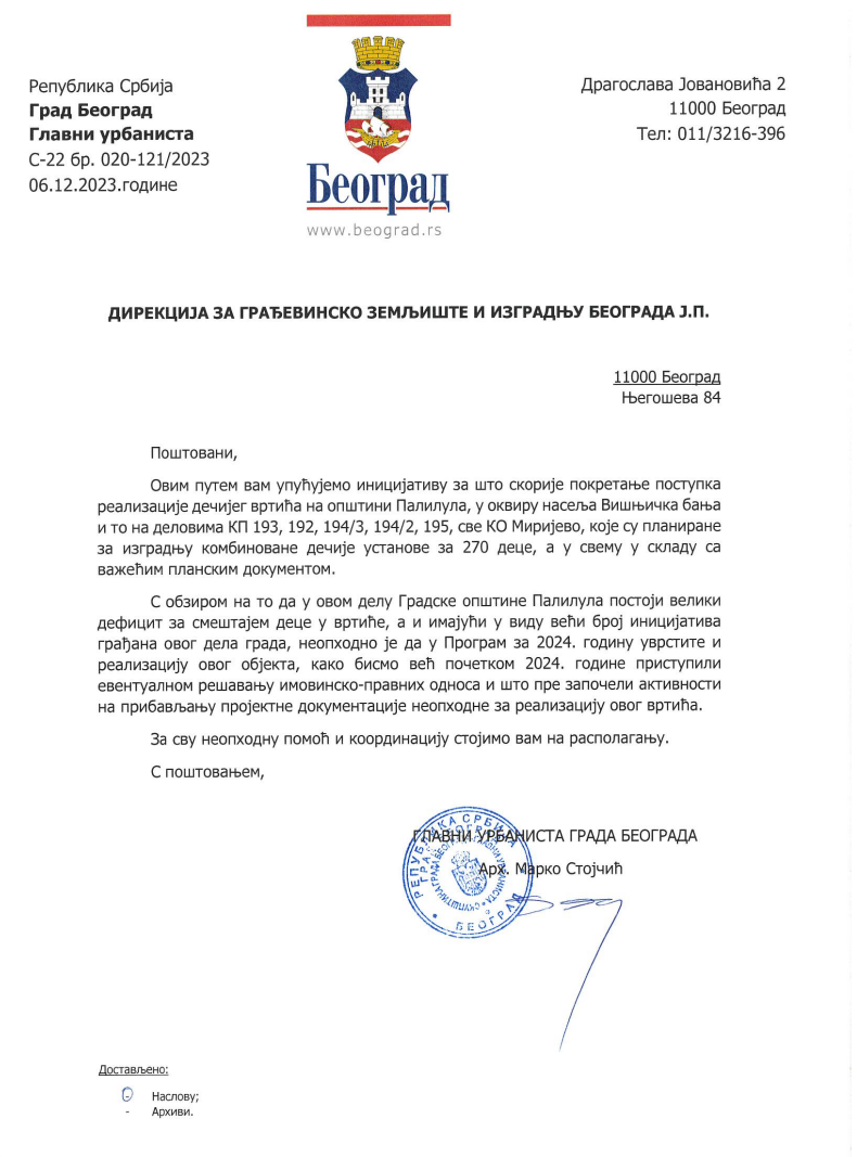 U decembru 2023. godine gradski urbanista Marko Stojčić uputio je dopis Direkciji za građevinsko zemljište i izgradnju Beograda sa inicijativom da se pokrene postupak realizacije projekta u Višnjičkoj Banji.